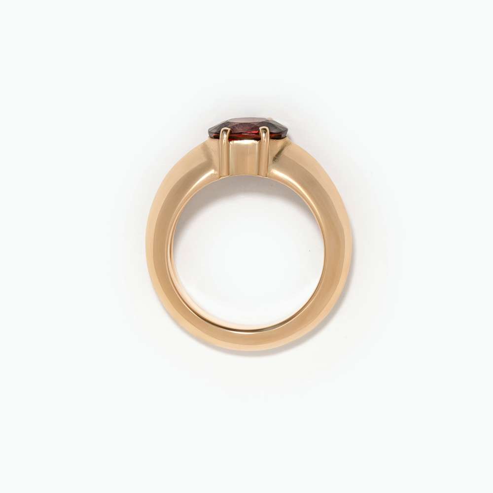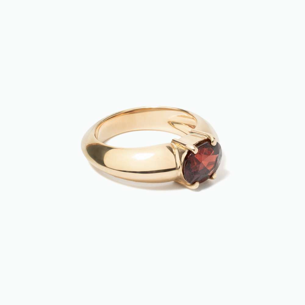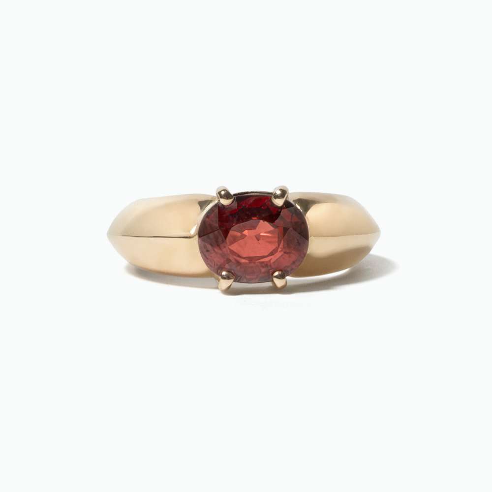 Bague en or. Corps de bague évasé en pointe serti d’un Grenat ovale de 6x8mm.