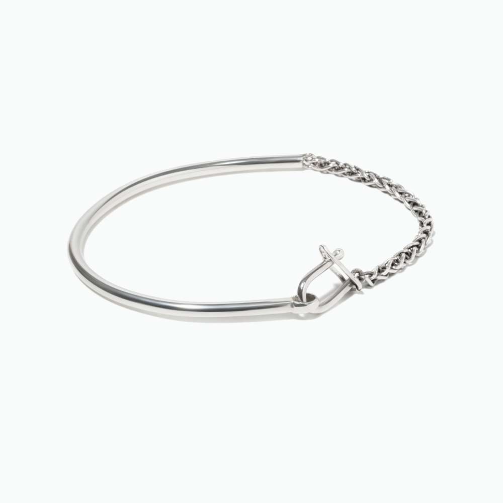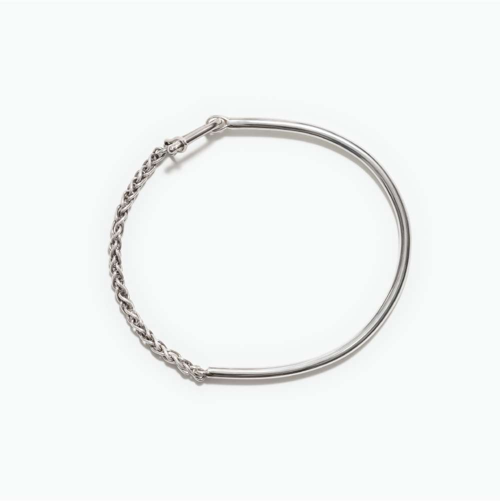 Bracelet en argent massif composé de fil rond et de chaîne palmier d’une épaisseur de 2,5mm.